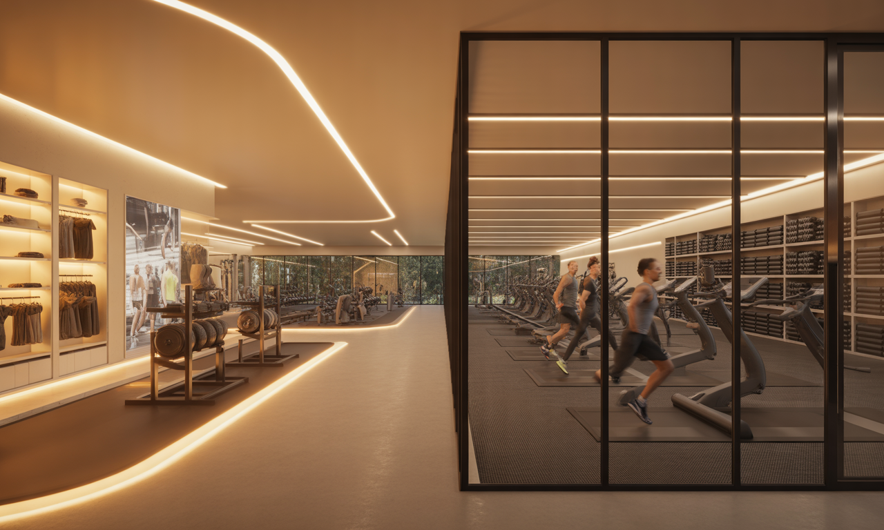 Accommodates indoor workout areas, retail operations, and equipment storage with professional front-facing amenities. Also great for recreation centers and trampoline indoor parks.