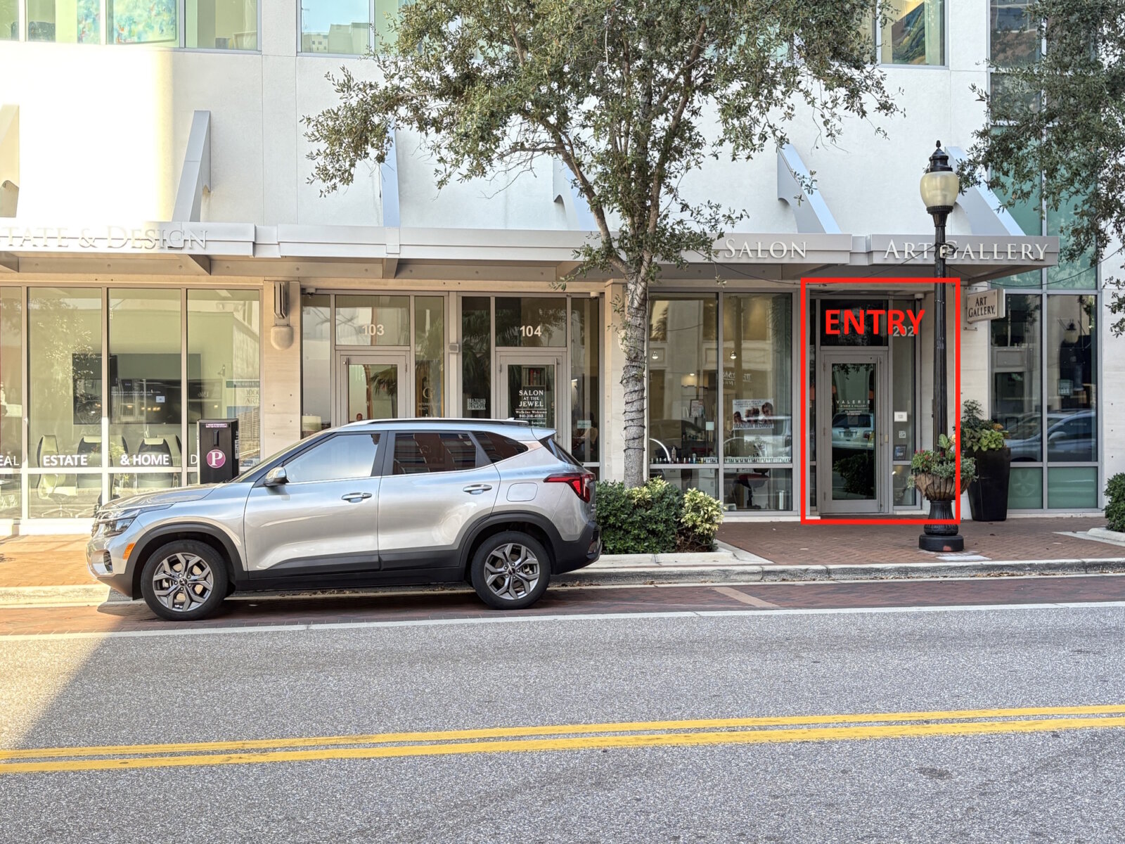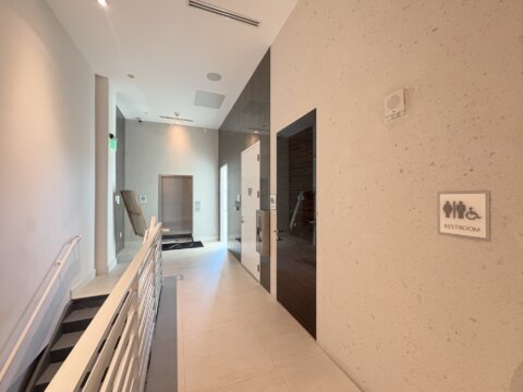 Premiere Downtown Sarasota location on Main St. The 2nd floor office condo is located within The Jewel, an impeccable mixed-use condo tower. The ground floor entry is finished with a white porcelain tile floor which is complimented by grey marble walls which leads to a private elevator that takes you to your suite. The ground floor entry to the suite provides secure 24 hour access via a fob. The nicely finished elevator offers lovely views of Main St. as you rise to the 2nd floor. Perhaps you prefer to take the contiguous open air stairs instead. Upon exiting the elevator you will see two large wonderfully built out ADA compliant bathrooms that are located in the common area. As you enter the suite you are immediately taken back by its elegance. Tall ceilings, immense natural lighting coming from windows that run the length of the suite and offer amazing views below. Striking porcelain floors and a very simple sleek feel. The space has a generous kitchenette as well. Towards the back their is a private office with it’s own smaller kitchenette allowing privacy for the owner should there be employees about. This is truly a rare find in the best part of downtown Sarasota….and is priced at a great value.